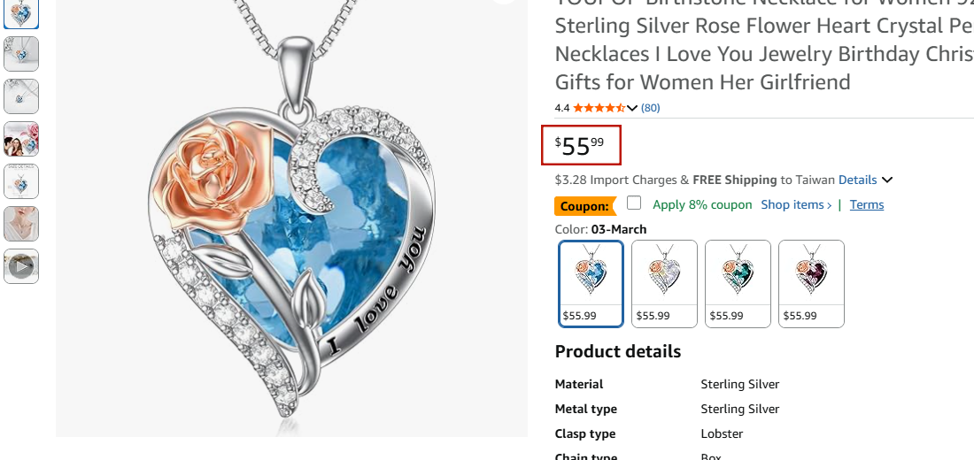 Sterling Silver Crystal Necklace: This Rose Heart Birthstone is made of 925 sterling silver with 14k white gold plated, lead-free, nickel-free. Suitable for people with sensitive skin.